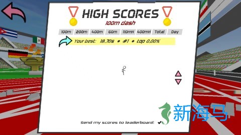 2、游戏提供多种模式,包括100米、200米、400米等,自由选择体验。例如选择100米比赛。