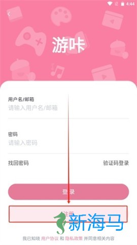 2、启动后,进入游咔的登录界面,点击注册按钮。