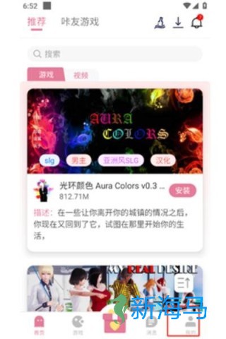1、首先打开游咔app,点击右下角的“我的”选项。