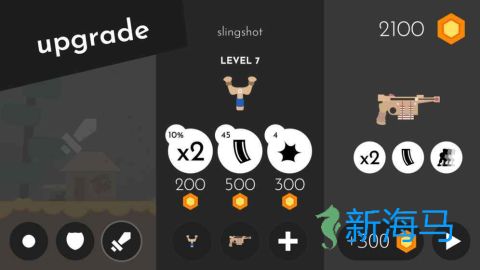 1、游戏画面极其简洁,每个关卡背景以清新青绿色为主,只有弹弓和靶子,带给玩家简约的快乐。