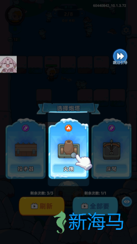 点击木箱子获取防御工事,选择合适的炮台进行部署。