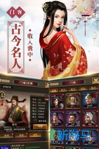 游戏融入了丰富多彩的官品与门客系统,允许你在这个充满竞争的官场中立足。通过招募历史名士,你不仅可以得其谋略,还能提升自己的地位。告别单调的打怪升级,来一次激烈的官场斗智斗勇,享受掌控一切的快感!