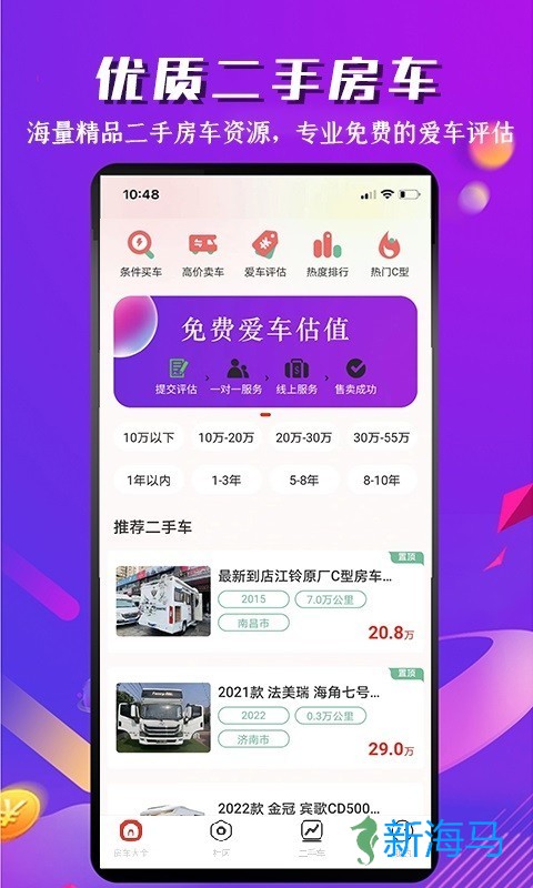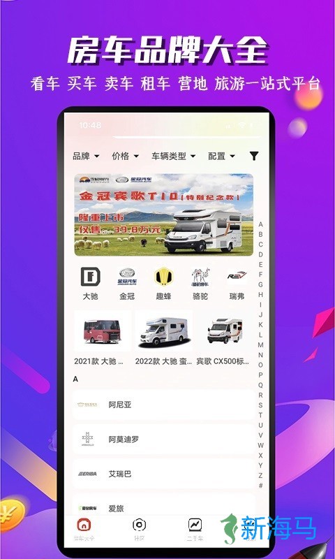 如果你想选购、了解和玩转房车,房车之家APP绝对是你的必备良伴!这款应用让你可以在手机上随时随地浏览房车信息,轻松搜索附近的驻车点、露营地和商家,让你的房车生活变得更加方便与愉快!房车之家为你提供全面的房车知识,包括房车大全、评测、图片、报价、活动、资讯、改装指南、二手房车信息、租赁服务以及精彩的视频内容,简直就是房车爱好者的宝库。