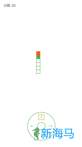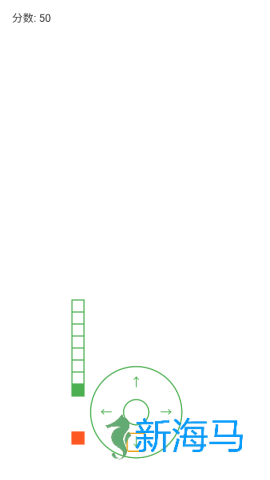 3、借助屏幕底部的方向键,尽情操控你的绿色贪吃蛇,享受抓住每一个橙红色方块的乐趣。