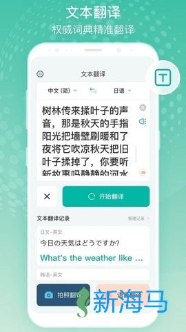 2、使用拍照翻译,简单挥动您的相机,对着书籍、路牌等,让翻译结果快速呈现在眼前。