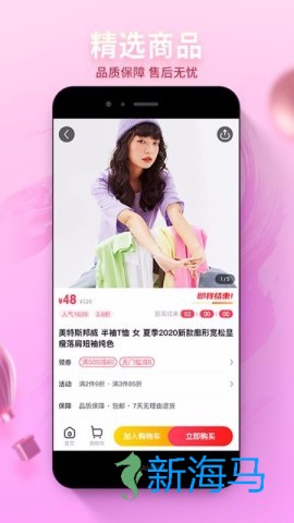 2、在商品页面,可以查看【美特斯邦威-半袖T恤】的详细信息,利用满减活动,点击【立即购买】或加入购物车。