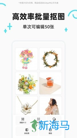 2、一次可处理50张图片,一键换背景、改尺寸、套用模板,速度与专业并存。