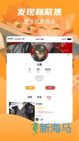 3、关注喜欢的画师,实时了解他们的动态、作品与商品,享受私信交流的乐趣;