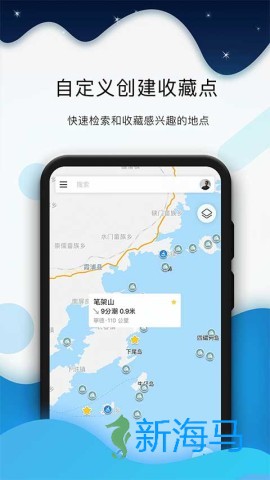 1、应用内置全球主要港口、岛屿及验潮站的数据,方便用户快速查找和收藏感兴趣的地点。同时支持地点的分享、导航和备注功能。