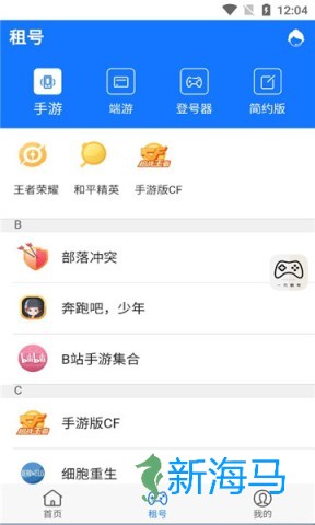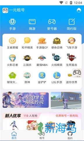 3、下载登录器后,可以在首页选择需要租的游戏账号。