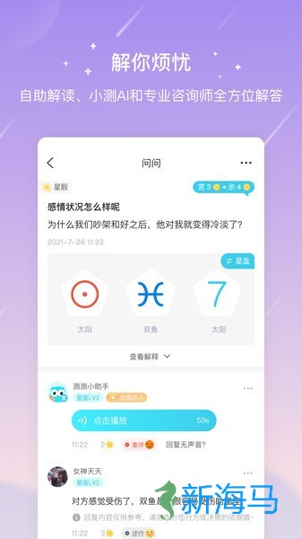 提供占星骰子及占卜等功能,用户可以匿名提问,专业占星达人将亲自为其解答,带来独特的启示。