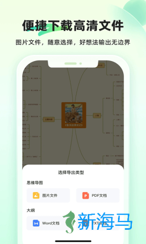 1、犀思维导图不仅可以创建多种形式的思维导图,还支持多种导出格式,如PNG或PDF,让分享变得轻松。