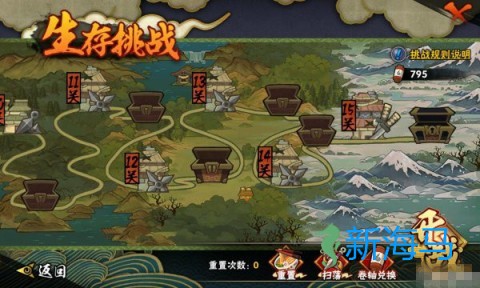 2、生存挑战是与战力加成的PVE单挑副本,了解忍者克制关系可以帮助你更顺利地通关。