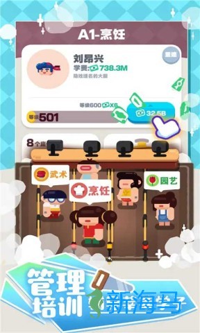 3、游戏目标不仅是赚钱,更在于解锁更多的荣耀与成就,最终打造一个连锁的培训学校。