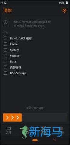 进入橙狐recovery后,点击右上角的设置锯齿图标,即可进入设置界面。