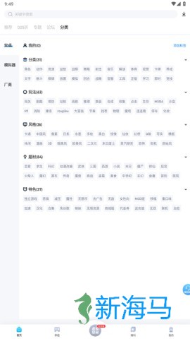 2、分类界面,涵盖安卓、模拟器、厂商等分类,细分为玩法、风格等,方便找游戏。